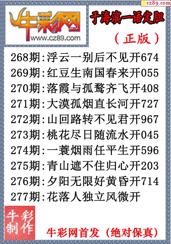 2025277期3d于海滨+每日于海滨号码精选胆码预测